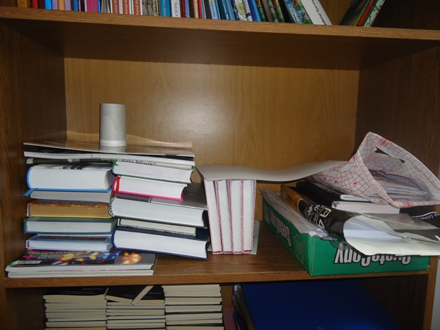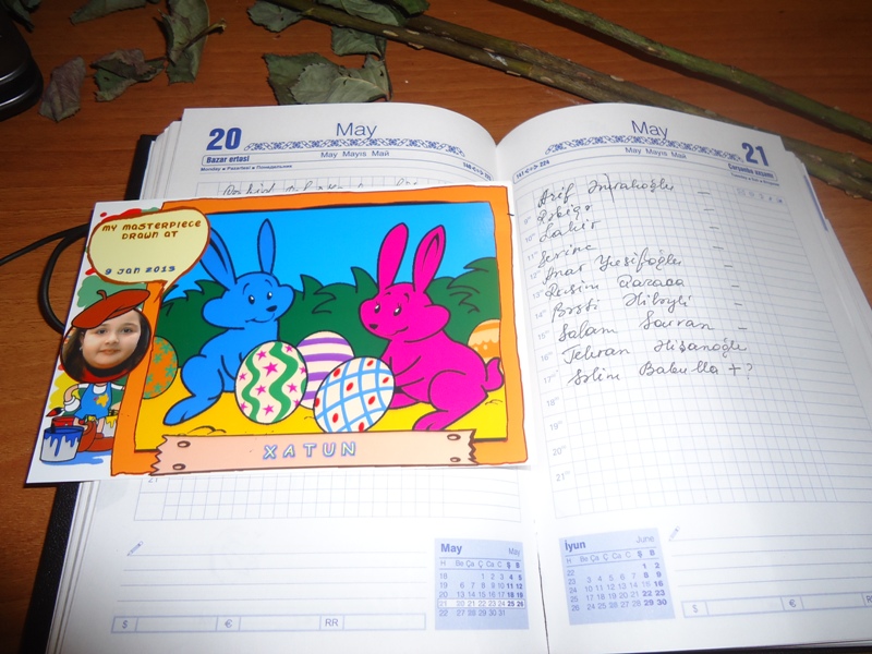 işarələr. Kitabları toplanıb, masasının üstündə qeyd dəftəri, son