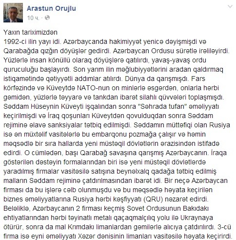 O, Qarabağ savaşı zamanı Moskvanın Bakını özündən xəbərsiz
