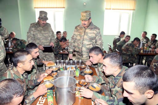 Əsgər yeməkxanasında nahar edən Z.Həsənov hərbi qulluqçuların