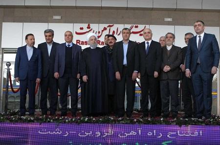 İran Prezidenti və qonaqlar Rəşt şəhərinin yeni vağzalında Qəzvin şəhərindən yola salınan ilk qatarı qarşılayıblar. Sonra açılış mərasimi olub.