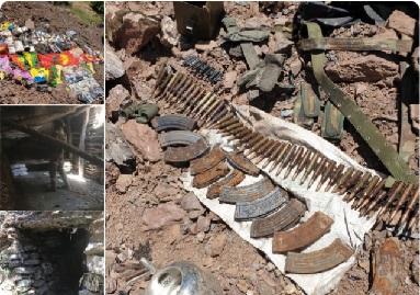 Axar.az xəbər verir ki, aviasiya zərbələrindən sonra hərbiçilər terrorçulara məxsus 3 mərtəbə və 5 bölmədən ibarət əllə qazılmış mağara, həmçinin 5 sığınacaq aşkarlayıblar.