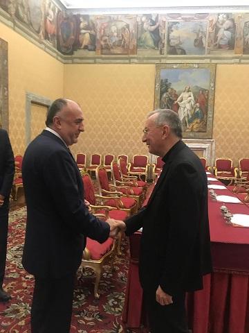 Azərbaycan Respublikasının Xarici İşlər naziri Elmar Məmmədyarov Müqəddəs Taxt-Taca rəsmi səfəri çərçivəsində Dövlət Katibi, Kardinal Pietro Parolin ilə görüşüb.