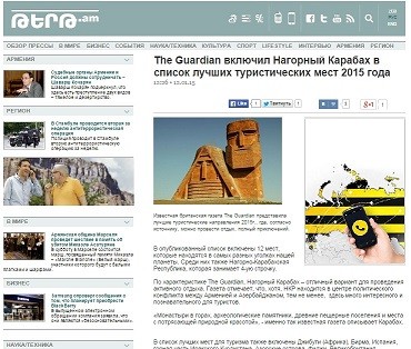 bildirir. Qəzet Dağlıq Qarabağı "turizm istiqaməti" kimi təbliğ