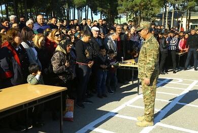 Sonra hərbi hissədə gənc əsgərlərin hərbi andiçmə mərasimi keçirilib. Gənc əsgərlər sıra meydanında Vətənə sədaqət andı içiblər.