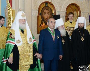 Sonra Rus Pravoslav Kilsəsinin mükafatları təqdim olunub. Azərbaycan Baş Nazirinin birinci müavini Yaqub Eyyubov və Azərbaycanın Rus İcmasının rəhbəri Mixail Zabelinə II dərəcəli Müqəddəs Serqi Radonejski ordeni, Rusiyanın Azərbaycandakı səfiri Mixail Boçarnikova isə Patriarx Fəxri Fərmanı təqdim edilib. Azərbaycan Dövlət Musiqili Komediya Teatrının xormeysteri Vaqif Məstanov III dərəcəli Müqəddəs Knyaz Daniil Moskovski ordeni, Rus Mədəniyyəti Mərkəzinin direktoru Qalina Manafova və Arxangel məbədi xorunun rəhbəri Kristina Əfəndiyeva Böyük Moskva Knyaginyası Müqəddəs Yefrosinya ordeninə layiq görülüblər.