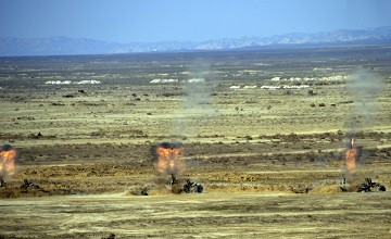 Qoşunlar əvvəlcədən hazırlanmamış ərazidə "düşmənə" atəşlə