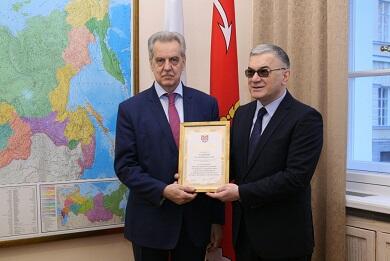 Sonda baş konsul Sankt-Peterburq Xarici Əlaqələr Komitəsinin sədrinə Azərbaycanla bağlı xatirə hədiyyələri təqdim edib.