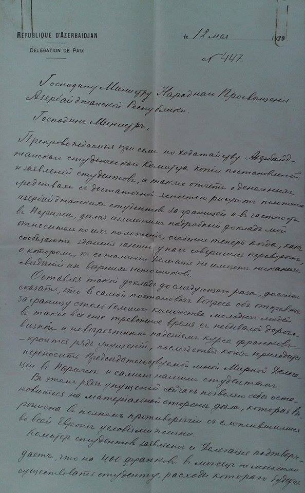 "O, 447 saylı bu məktubu əslində Azərbaycan Cümhuriyyətinin xalq