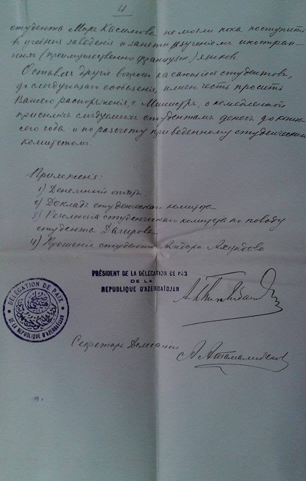 Bu sənəd Azərbaycan Cümhuriyyəti Sülh Heyətinin gənc hökumətin