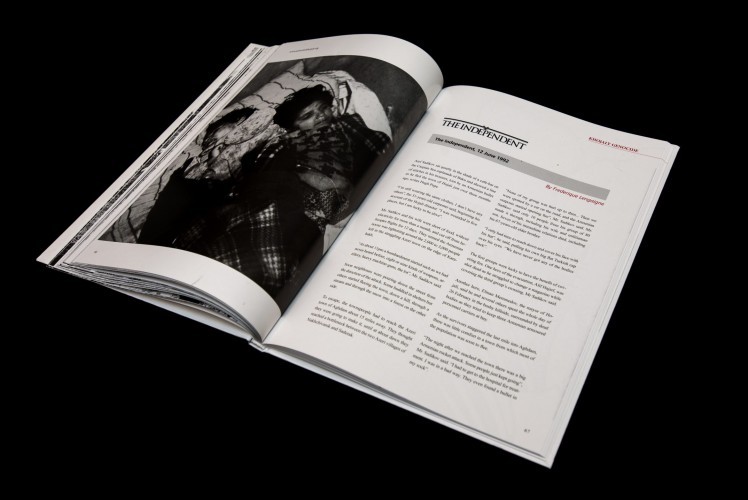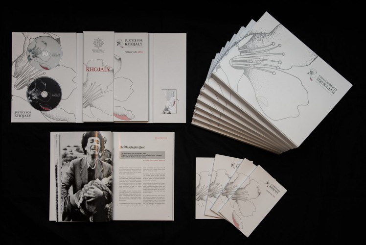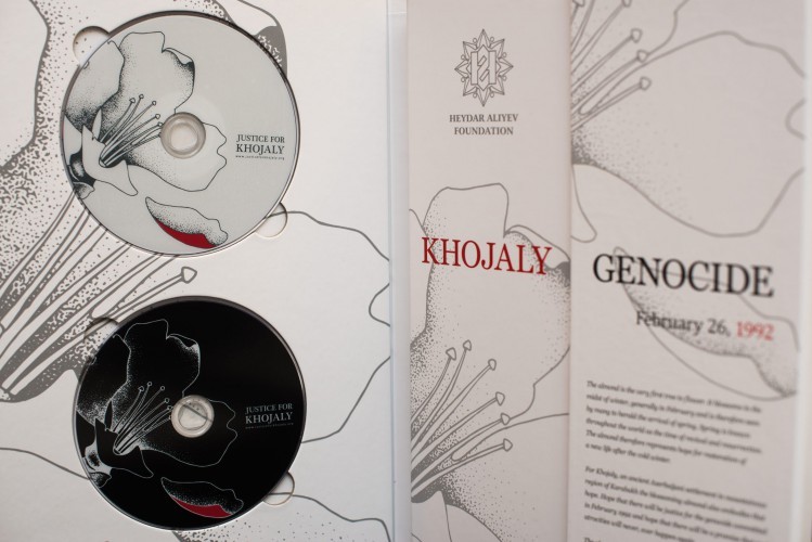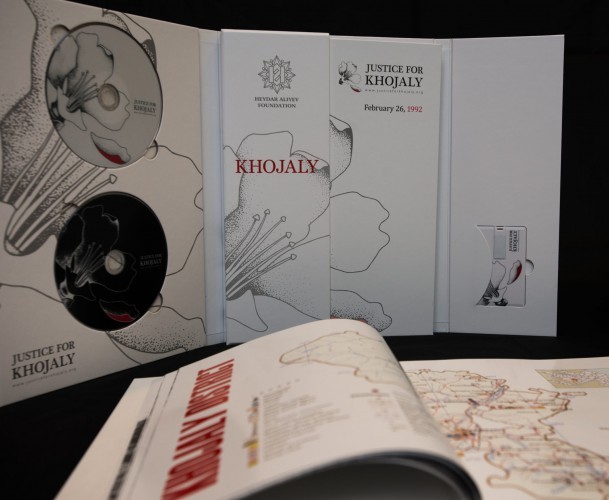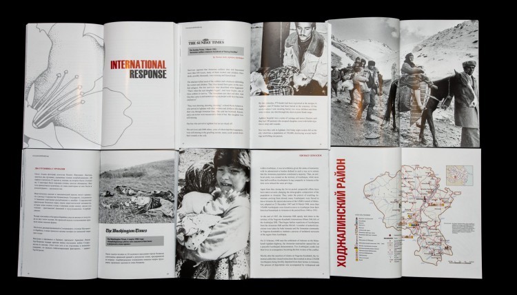"Xocalıya ədalət" adlı kitabda və bukletdə faciəyə dair fotolar,