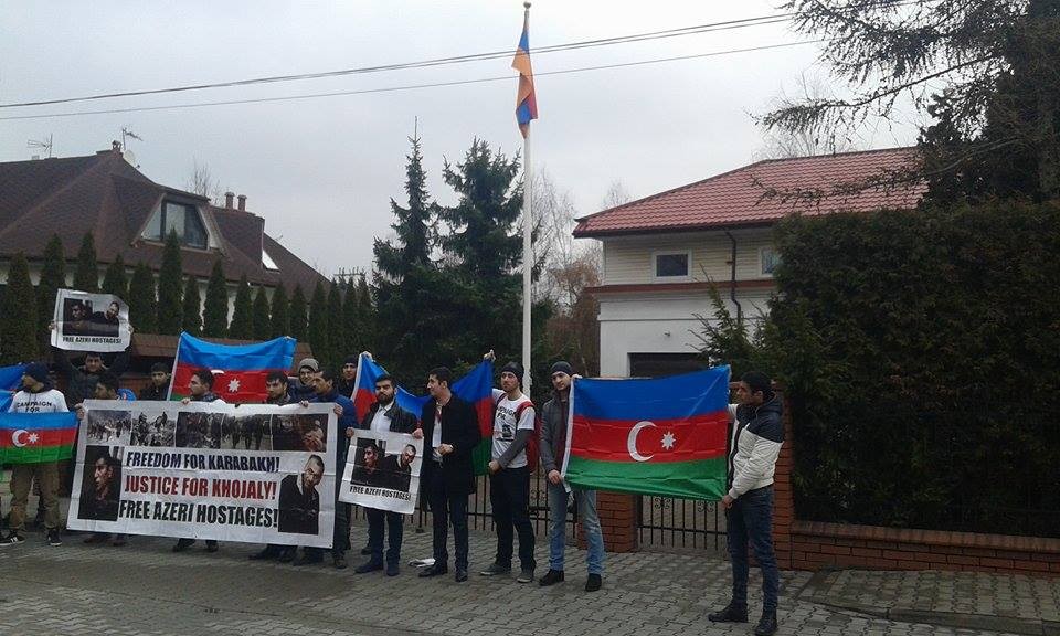Ermənistanın bu ölkədəki səfirliyi qarşısında etiraz aksiyası
