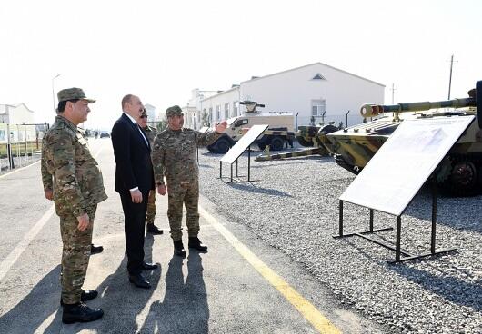 Dövlət başçısı hərbi hissədə yaradılan şəraitlə tanış olub.