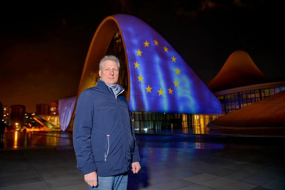 “Heydər Əliyev Mərkəzində dalğalanan Avropa İttifaqının bayrağı Aİ və Azərbaycan arasındakı həmrəylik və tərəfdaşlıq əlaqələrinin əksidir. Birlikdə daha güclüyük! Sag ol, Azərbaycan!” - səfir Kestutis Jankauskas qeyd edib.