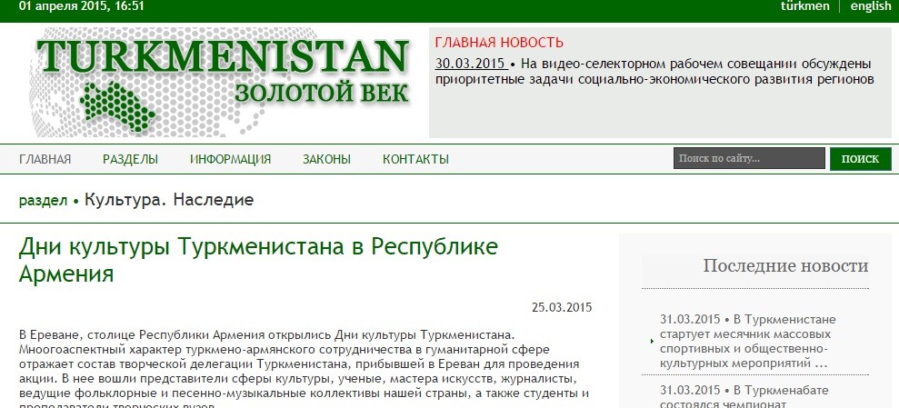 Axar.az xəbər verir ki, bu barədə məlumat Türkmənistan dövlət