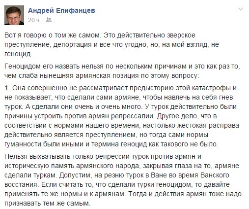 Andrey Yepifançev öz Feysbuk səhifəsində çıxış edib.