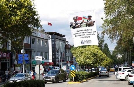 Türkiyənin müxtəlif vilayətlərinin ictimai nəqliyyat vasitələrinin elektron tablolarında “Bir millət, iki dövlət”, “Azərbaycan” şüarları və iki qardaş ölkənin bayraqları əks olunub.