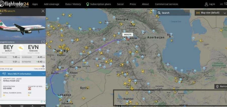 Livanın paytaxtı Beyrutdan İrəvana “Airbus A320” təyyarəsi istiqamət götürüb.