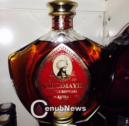 "İçki şüşələrinin üzərinə Şah İsmayıl Səfəvinin rəsmini