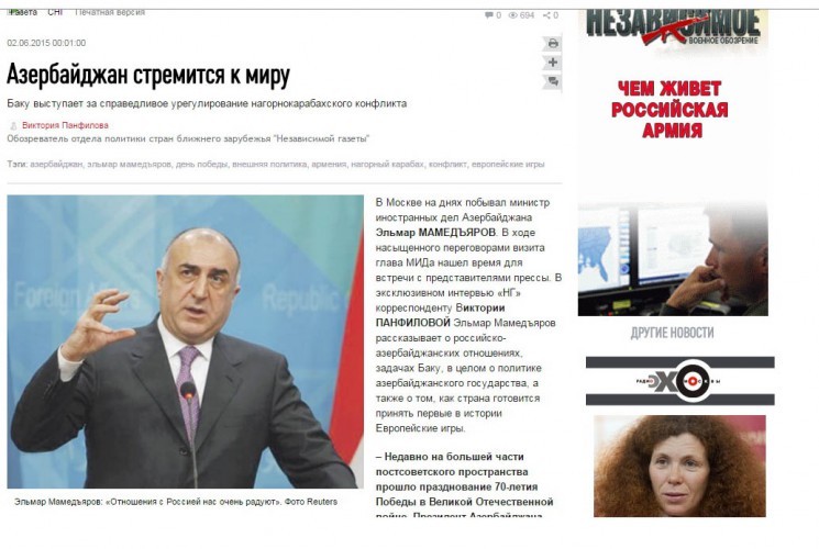 Rusiyada çıxan "Nezavisimaya qazeta" nəşrində
