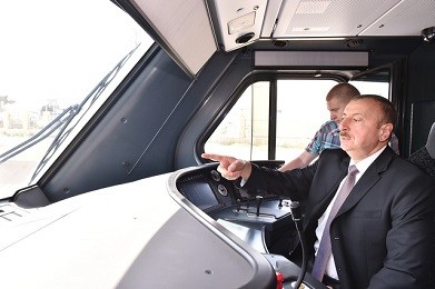 Prezident İlham Əliyev qatarı idarə etdi.