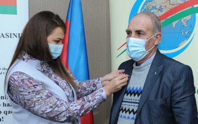 Qəhrəmanın atasına Komitə adından təşəkkür məktubu, Qarabağ mövzusunda rəsm əsəri və xatirə hədiyyələri təqdim edilib.