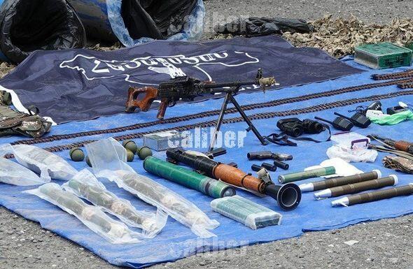 Bildirilir ki, piyada əleyhinə minalanmış ərazidə basdırılmış iki plastik çəlləkdə avtomat tüfənglər, pulemyot, qumbaraatan, süngü bıçaq, ərzaq məhsulları, siqaretlər, səssiz atəş cihazları, rabitə və optik müşahidə cihazları, GPS naviqatoru, zirehli jilet, siqnal tapançası, döyüş sursatları, həmçinin sadalanan silahlar üçün daraqlar və müxtəlif məqsədli patron qutular aşkarlanıb.