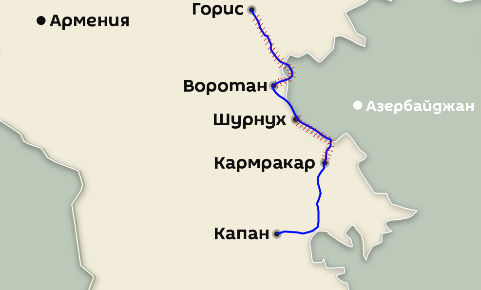 Ermənistanın Gorus-Qafan yolunun Azərbaycan ərazisindən keçən hissələrinin bağlanması barədə erməni mediası xəritə yayıb.