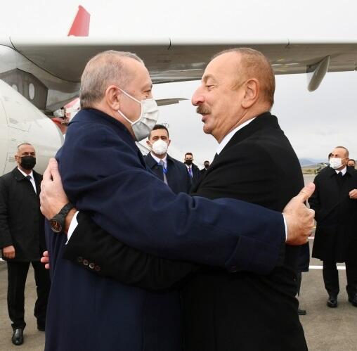 Türkiyə Prezidenti Rəcəb Tayyib Ərdoğanı hava limanında Azərbaycan Respublikasının Prezidenti İlham Əliyev qarşıladı.