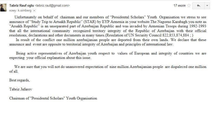 Qarabağ Respublikasına Təhsil Səfəri" adlı elan yerləşdirilib. Buna