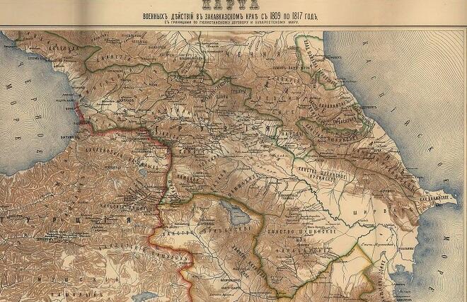Çar Rusiyasının Cənubi Qafqazda 1809-1817-ci illəri əhatə edən hərbi fəaliyyətini və Gülüstan müqaviləsi və Buxarest sülhü ilə müəyyənləşən sərhədləri əks etdirən xəritə sosial şəbəkələrdə paylaşılıb.