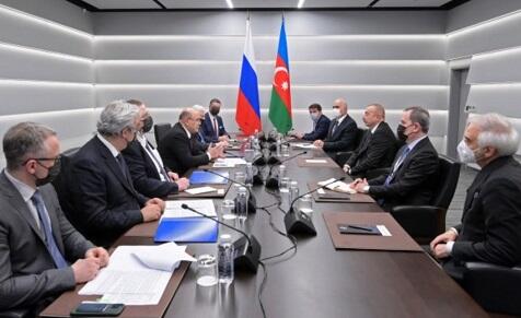 Daha sonra Prezident İlham Əliyev ilə Rusiya Federasiyası Hökumətinin sədri Mixail Mişustin arasında görüş olub.