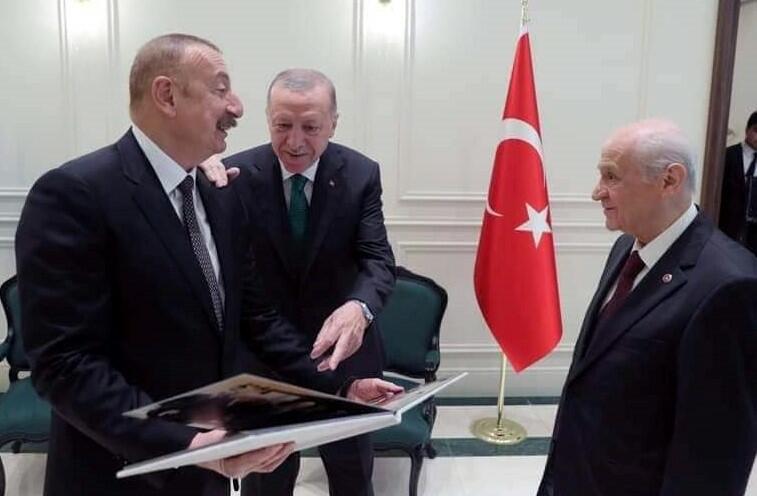 Türkiyənin Milliyyətçi Hərəkat Partiyasının sədri Dövlət Baxçalı Prezident İlham Əliyevə ulu öndər Heydər Əliyevlə görüşlərini əks etdirən fotoları və üzərində “Qarabağ Fatehi” yazısı olan tapança hədiyyə edib.