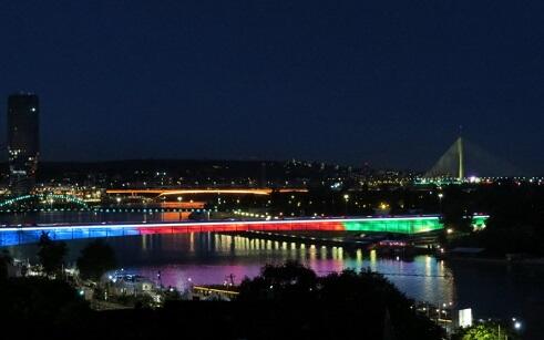 Axar.az xəbər verir ki, Azərbaycanın Serbiyadakı səfirliyinin təşəbbüsü ilə Dunayçay üzərindəki Brankov və Ada körpüləri şanlı bayrağımızın rənglərinə bürünüb.