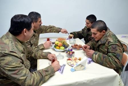 Müdafiə naziri çay süfrəsi arxasında əsgərlərlə səmimi söhbət edib,