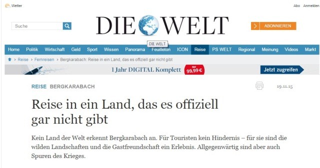 edərək, reportaj hazırlayıb. Bu reportaj noyabrın 19-da "Die Velt"