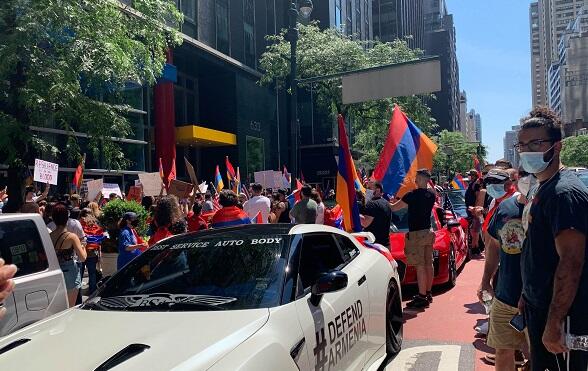 Ermənilər aksiya zamanı Azərbaycan əleyhinə şüarlar səsləndiriblər.