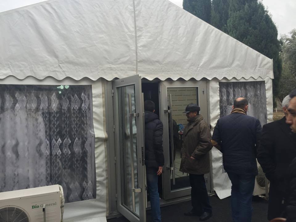 Bu gün səhərdən isə şairin yaşadığı mənzilin qarşısında mağar qurulub.