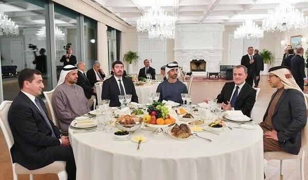 Xəbər verdiyimiz kimi, bu gün Azərbaycan Prezidenti İlham Əliyevin adından ölkəmizdə rəsmi səfərdə olan Birləşmiş Ərəb Əmirliklərinin Prezidenti Şeyx Məhəmməd bin Zayed ən-Nəhyanın şərəfinə rəsmi ziyafət verilib.