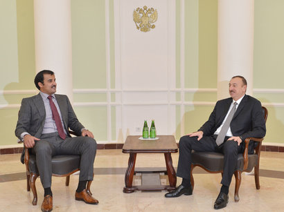 Azərbaycan Respublikasının Prezidenti İlham Əliyev fevralın 6-da Soçidə Qətər Dövlətinin Əmiri şeyx Təmim bin Həməd Al Tani ilə görüşüb.