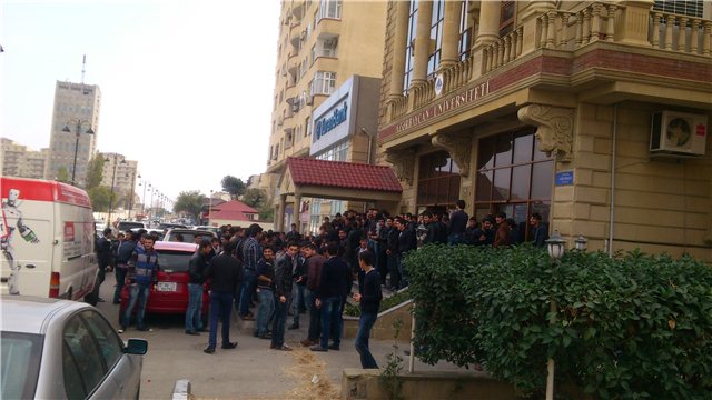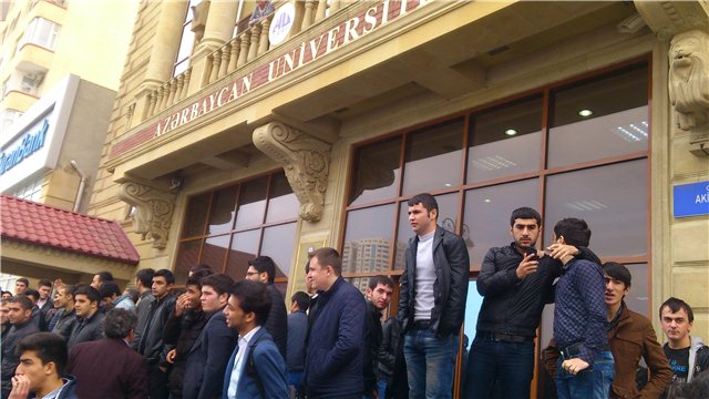 Azərbaycan Universitetinin tələbələri imtahanların yazılı keçirilməsinə etiraz olaraq aksiya keçirirlər. Bu barədə hadisə yerində olan "Musavat.com"un reportyoru xəbər verib.