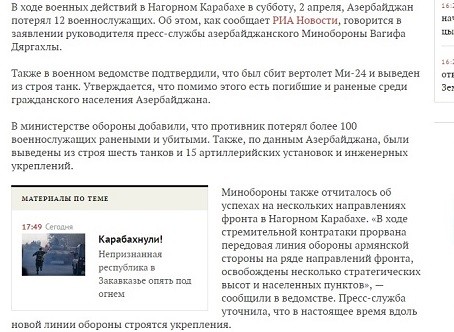 Rusiya mediası Azərbaycan Silahlı Qüvvələrinin cəbhə xəttində uğurundan yazıb.