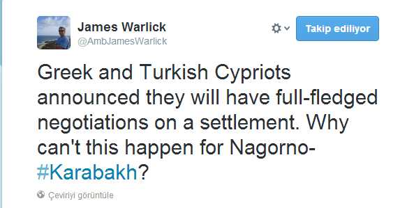 "Axar.az" xəbər verir ki, bu sözləri amerikalı həmsədr Ceyms Uorlik öz Tvitter səhifəsində yazıb.