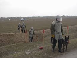 cevik qrupları minaaxtaran itlərin dəstəyi ilə təmas xəttində