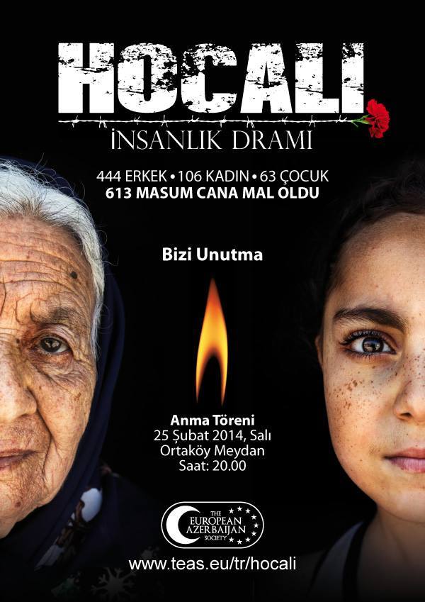 "Avropa Azərbaycan topluluğu"nun təşkilatçılığı ilə "Xocalı-insanlıq dramı"adı altında fevralın 25-də Ortaköy meydanında Xocalı qurbanları anılacaq.