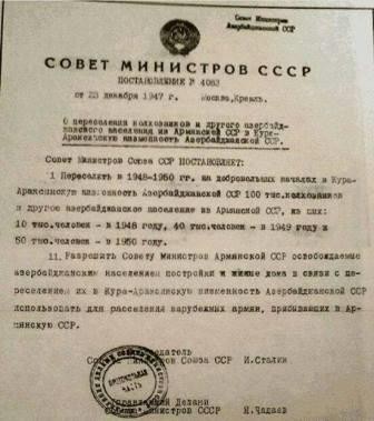 Axar.az xəbər verir ki, Stalinin bu əmrində 1948-50-ci illərdə