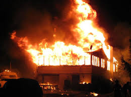 evdə olmayan ev sahibinin. Alovlar içində olan mənzilə daxil olmaq