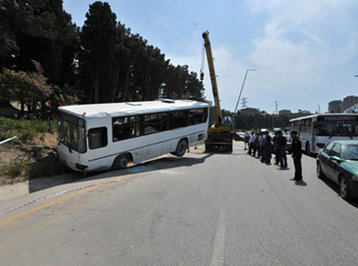 Bakıda sərnişin avtobusu qəzaya uğrayıb.