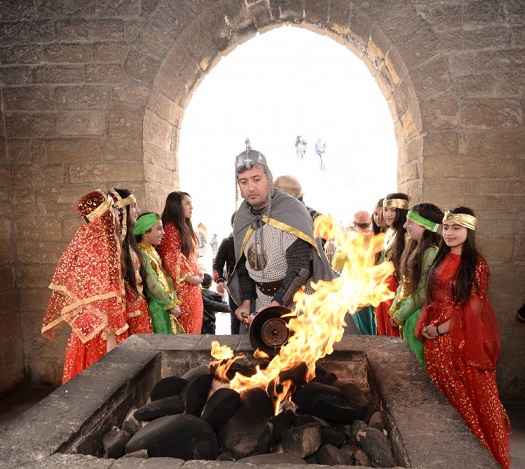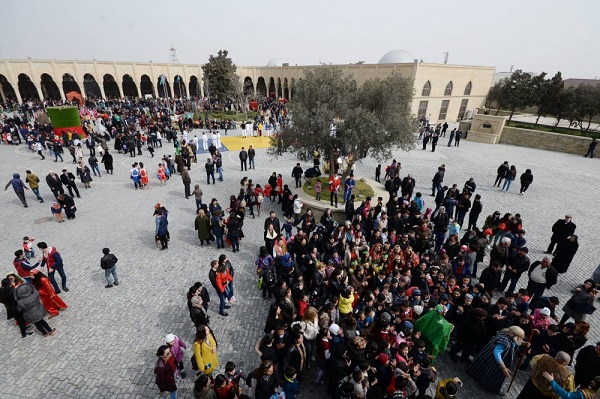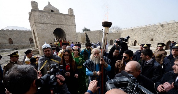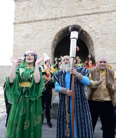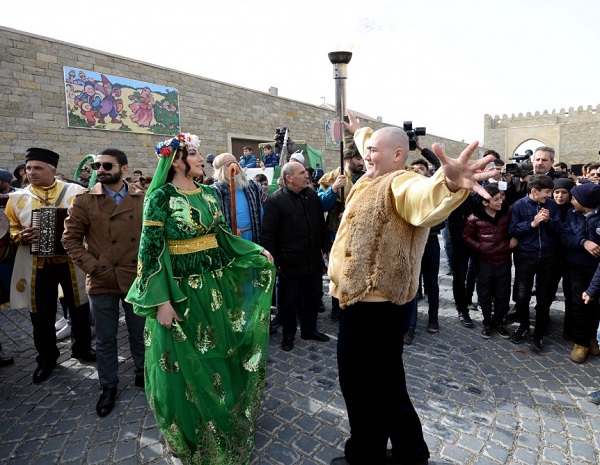 Metronun “İçərişəhər” stansiyası və Bakı Şəhər İcra Hakimiyyəti binasının yanındakı ərazidən “Atəşgah”a doğru od götürmək üçün yola düşən bayram karvanı odu götürüb geri qayıdır.