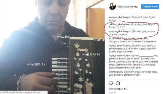 Kult.az xəbər verir ki, buna səbəb Brilyant Dadaşovanın İnstaqramda erməni qarmon ifaçısı Varujan Şahbazyanın video və şəkillərini bəyənməsidir. Buna etiraz edən sosial şəbəkə istifadəçiləri Brilyant Dadaşovanı düşmənə dəstək olmaqda qınayıblar.