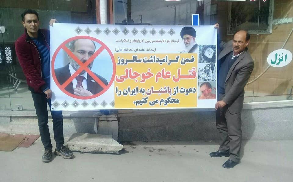 Ermənistan Baş naziri Nikol Paşinyanın Tehranın “Ararat” klubunda erməni icması ilə görüşündə “Qarabağ Ermənistandır və Son” sözləri yazılmış plakatın qaldırılmasına görə Güney Azərbaycanda etirazlar davam edir.